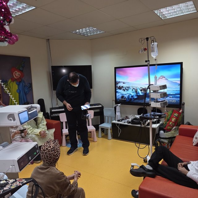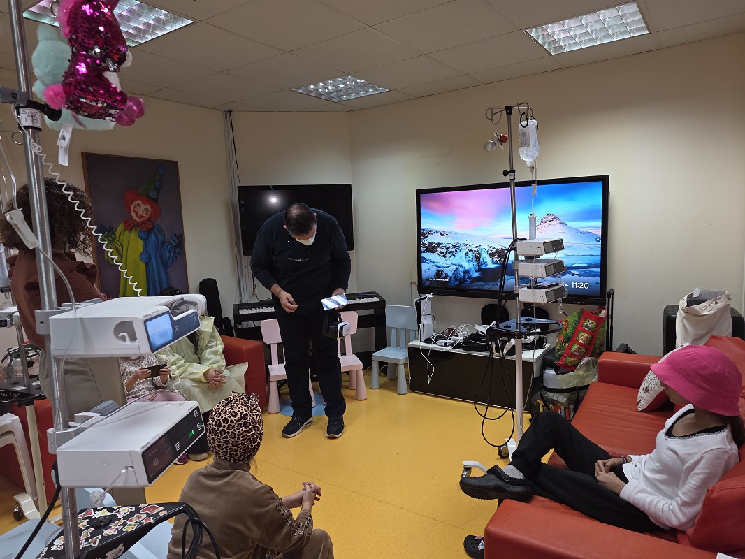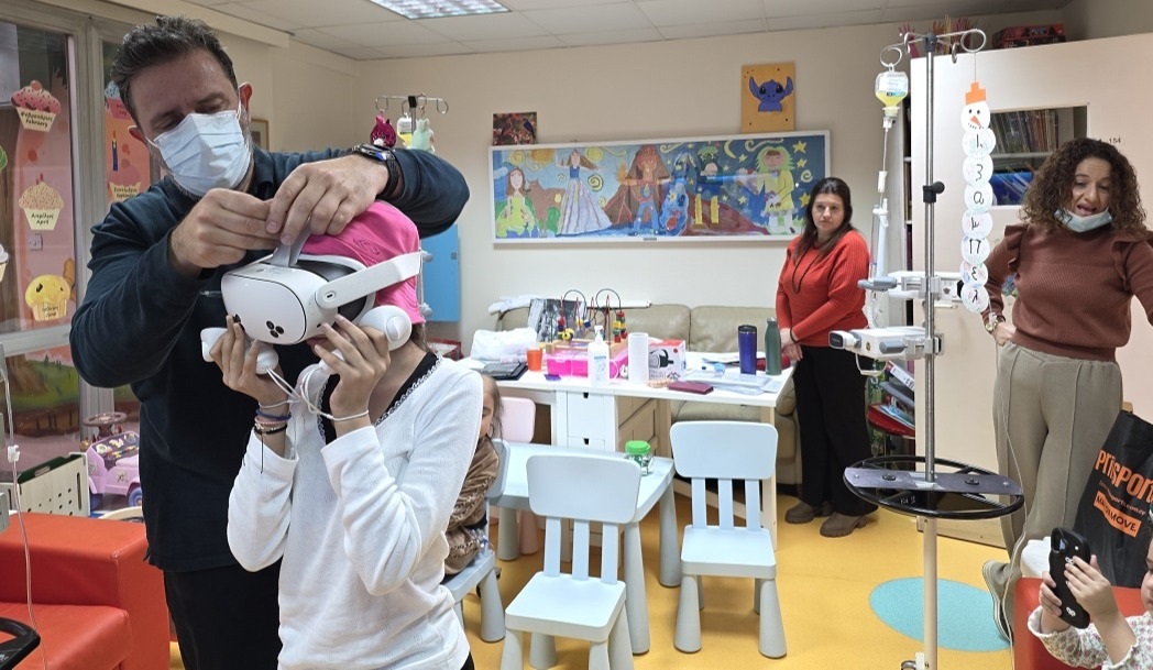 Στη συνέχεια σε τρίτη συνάντηση , τα παιδιά της παιδογκολογικής κλινικής του Νοσοκομείου αλληλεπίδρασαν με εξοπλισμό εικονικής-μικτής πραγματικότητας, μεταμορφώνοντας το θάλαμο νοσηλείας σε ένα μαγικό πεδίο επίλυσης τρισδιάστατων γρίφων . Όπως αναφέρει και ο δρ Ρουσιάς, η διεθνής βιβλιογραφία συχνά υποστηρίζει τη χρήση εμβαθιστικών τεχνολογιών σε περιβάλλοντα νασηλείας, με ευεργετική λειτουργεία . Μέσω της "αίσθησης παρουσίας" τα παιδιά βιώνουν μια δημιουργική νοερή μεταφορά στο εικονικό περιβάλλον. Η διαδικασία αυτή λειτουργεί ως ισχυρός μηχανισμός μείωσης του αγχους , μετατοπίζοντας την προσοχή σε ευχάριστες διαδραστικές εμππειρίες που ενισχύουν την ψυχική ανθεκτικότητα και τη θετική διάθεση.