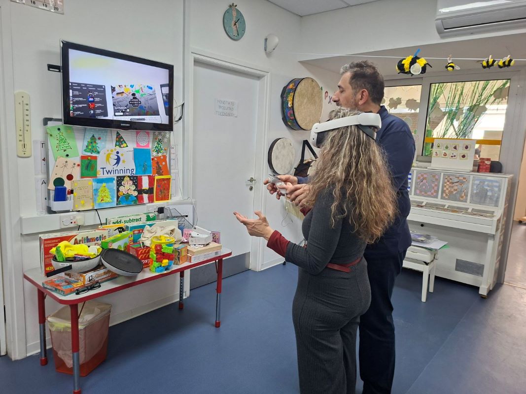 Με τη βοήθεια του δρ Ρουσιά τον οποίο και ευχαριστούμε αξιοποίηθηκαν συσκευές meta Quest 3S , καθώς και λύσεις smartphone based VR για τα πιο μικρά παιδιά .